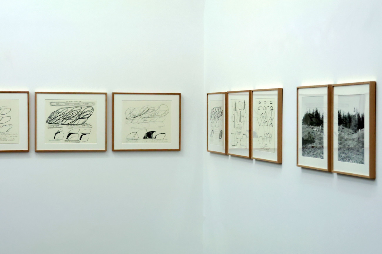 Composta por 23 desenhos, alguns deles contendo reflexões textuais do artista, a coleção exposta também inclui dois registos fotográficos que constituem, na perspetiva do curador, um interregno à linha de horizonte estabelecida pelos trabalhos de arte plástica de Pedro Tropa na galeria municipal.