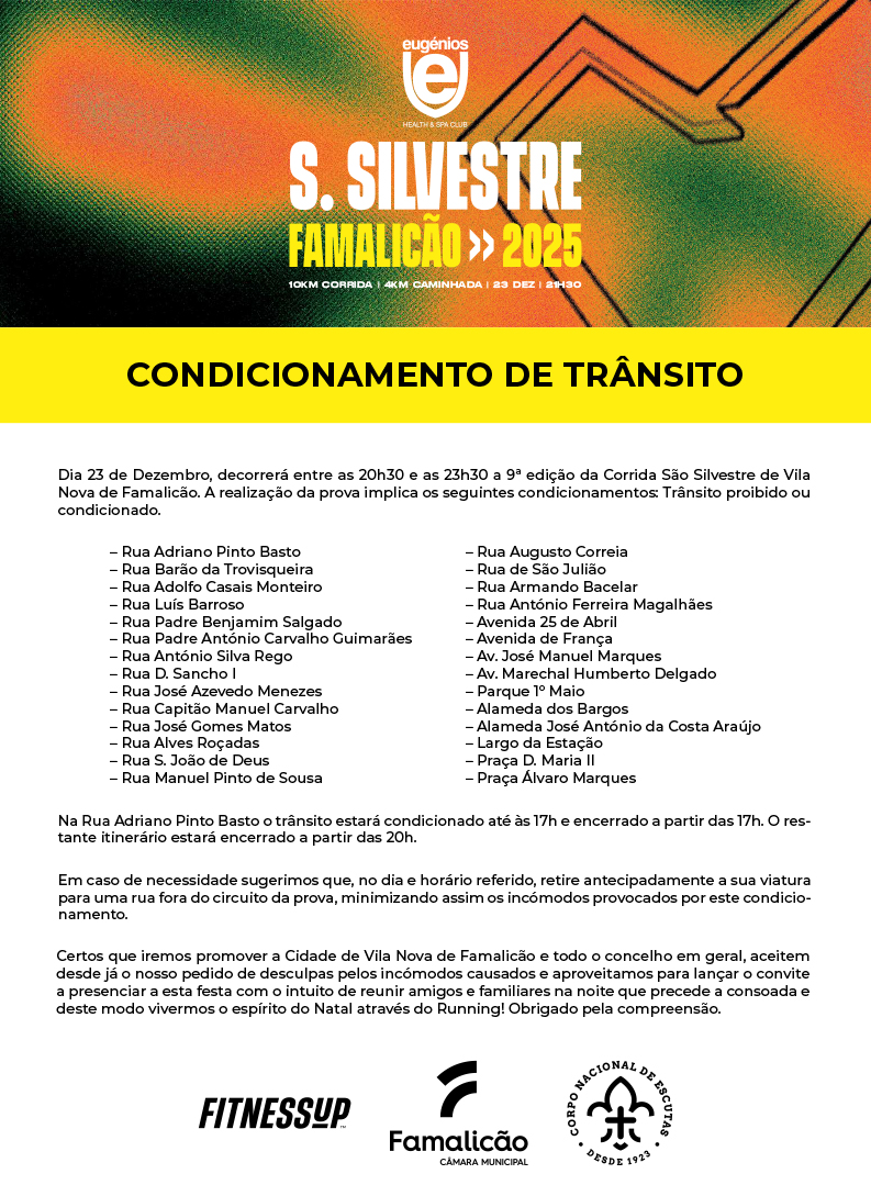 Aviso de trânsito | 9ª edição São Silvestre de Famalicão - Portal do Município de Vila Nova de Famalicão - Portugal