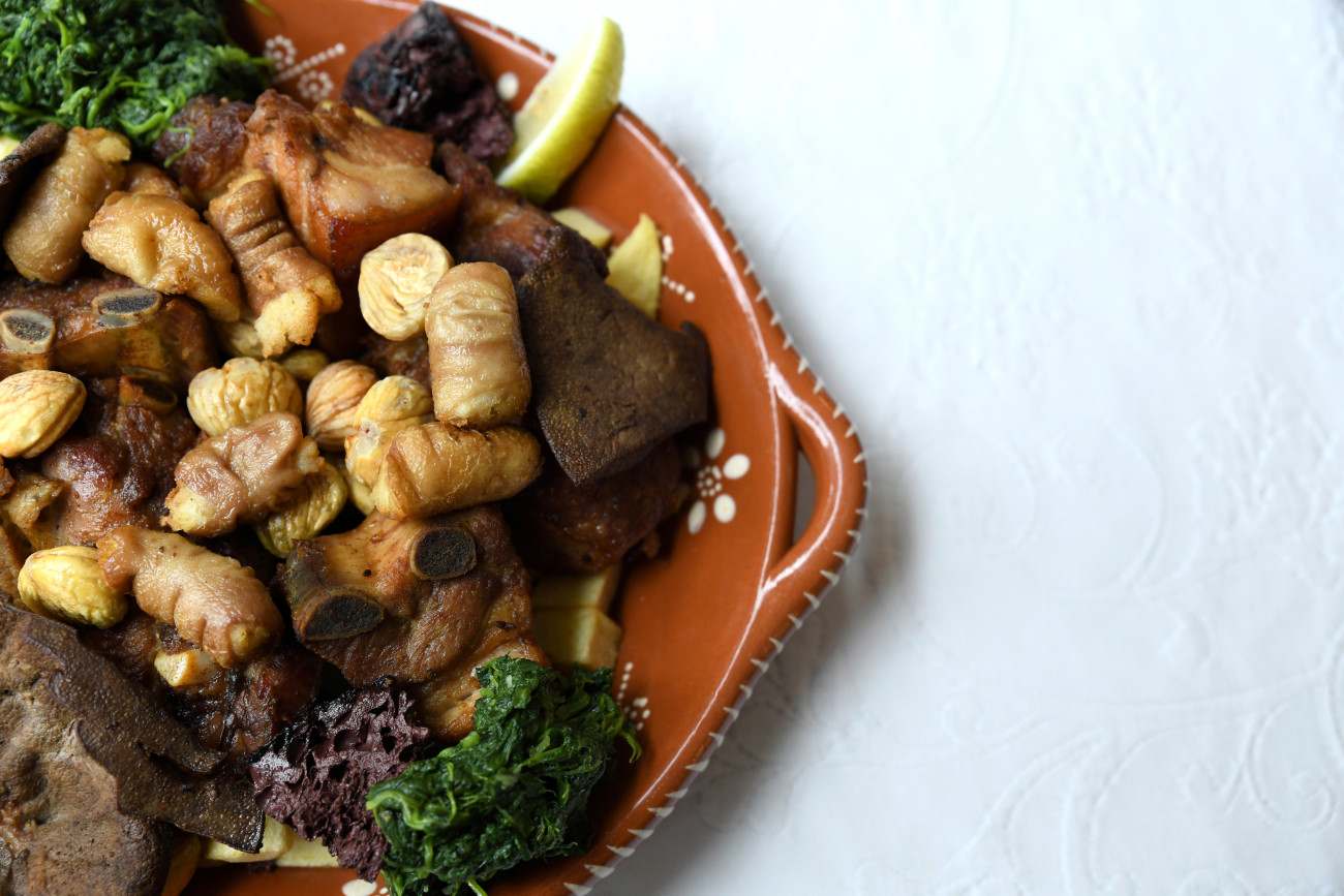 Os rojões com castanhas são um prato típico da região minhota, com longa tradição gastronómica, confecionado com carnes e enchidos, tudo com tempero característico e que tornam o prato de sabor intenso.