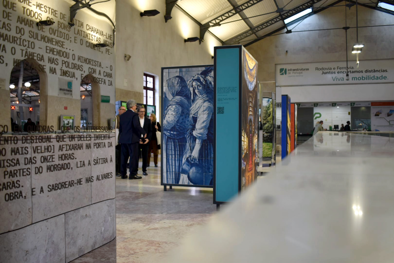 As part of the celebrations of the bicentenary of the birth of Camilo Castelo Branco, the exhibition, installed in the lobby on the 2nd floor of Rossio Station and open until 8 March, is a privileged showcase for the “ Camillo: The Writer's Routes” project, promoted by the Municipality of Famalicão. Located in one of the capital's most emblematic railway stations, the exhibition brings thousands of national and foreign visitors closer to Camilo's legacy and the territory that gave him his literary life.