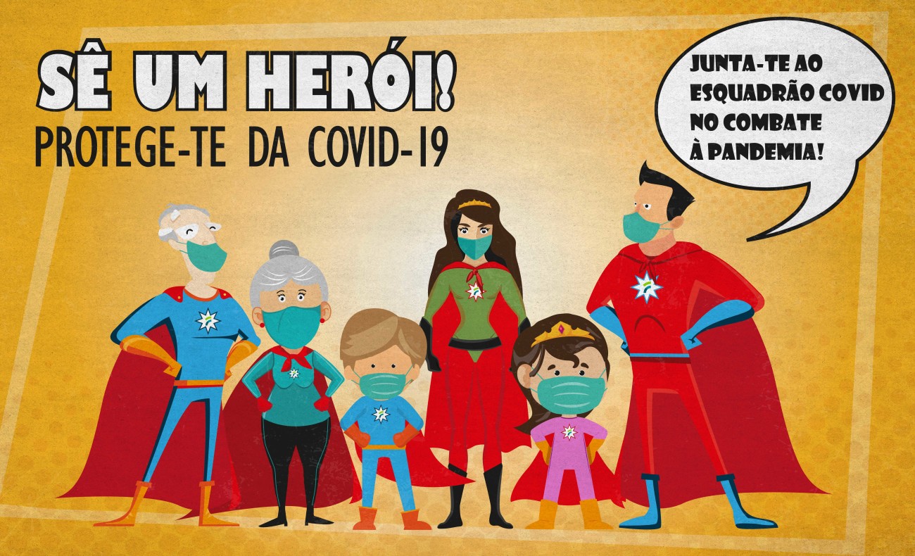 Com ilustrações de Theresa Campos, a campanha incita à proteção armada contra a Covid com gel desifetante, máscara de proteção e distanciamento social. As personagens percorrem várias faixas etárias de uma família em que todos se tornam super-heróis por ação da sua conduta responsável.