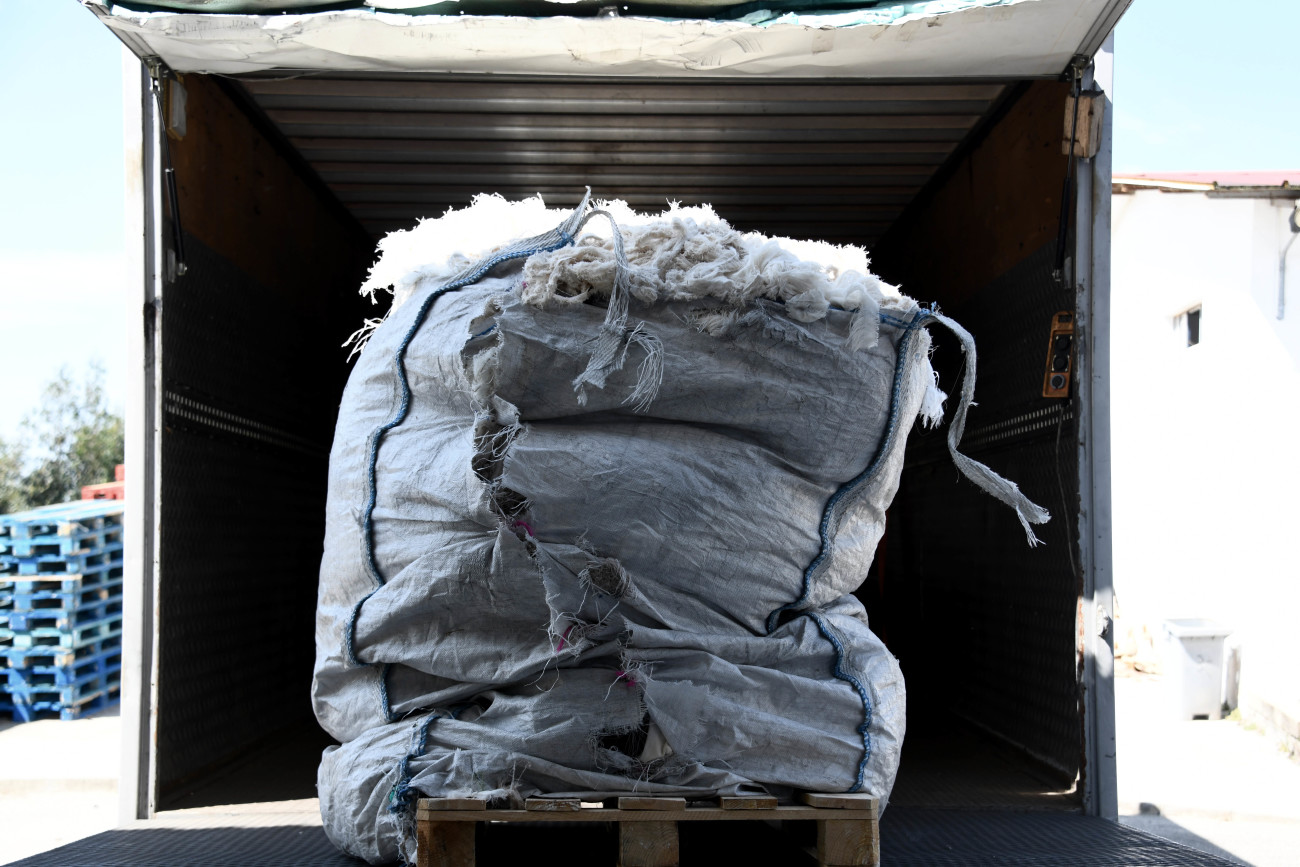 Para a construção desta instalação foram reutilizados desperdícios da Riopele, parceira da iniciativa, nomeadamente as aparas de final da produção de um tecido, a chamada “Ourela falsa de tear”.
