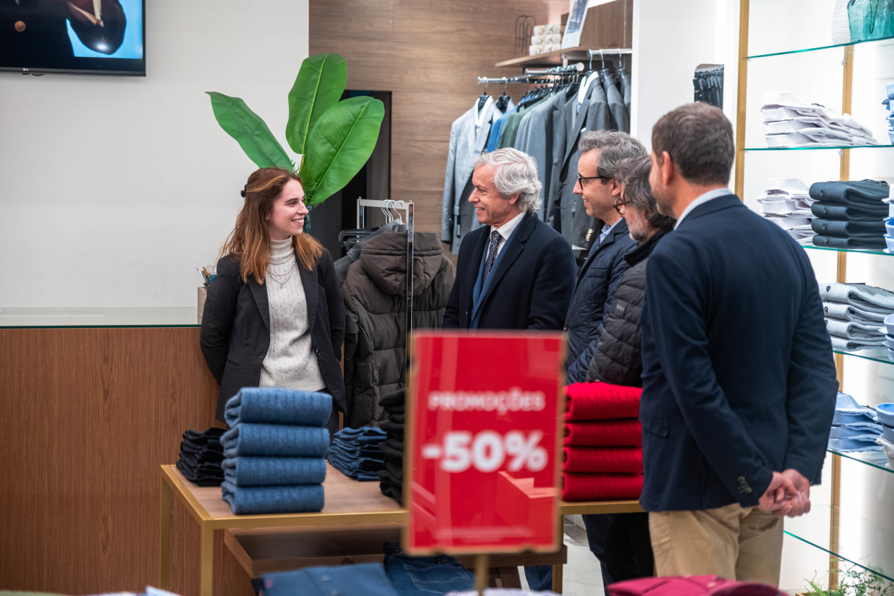 Mário Passos percorreu o comércio local acompanhado pelo presidente da ACIF – Associação Comercial e Industrial de Vila Nova de Famalicão, Fernando Xavier, e do vereador da Economia, Augusto Lima.