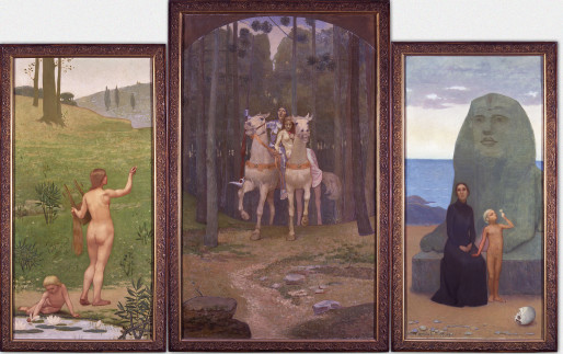Esperança, Amor e Saudade são os títulos dos três painéis, e neles os motivos figurativos simbolizam situações existenciais, integrando-se assim a obra no movimento simbolista do fim do século XIX.