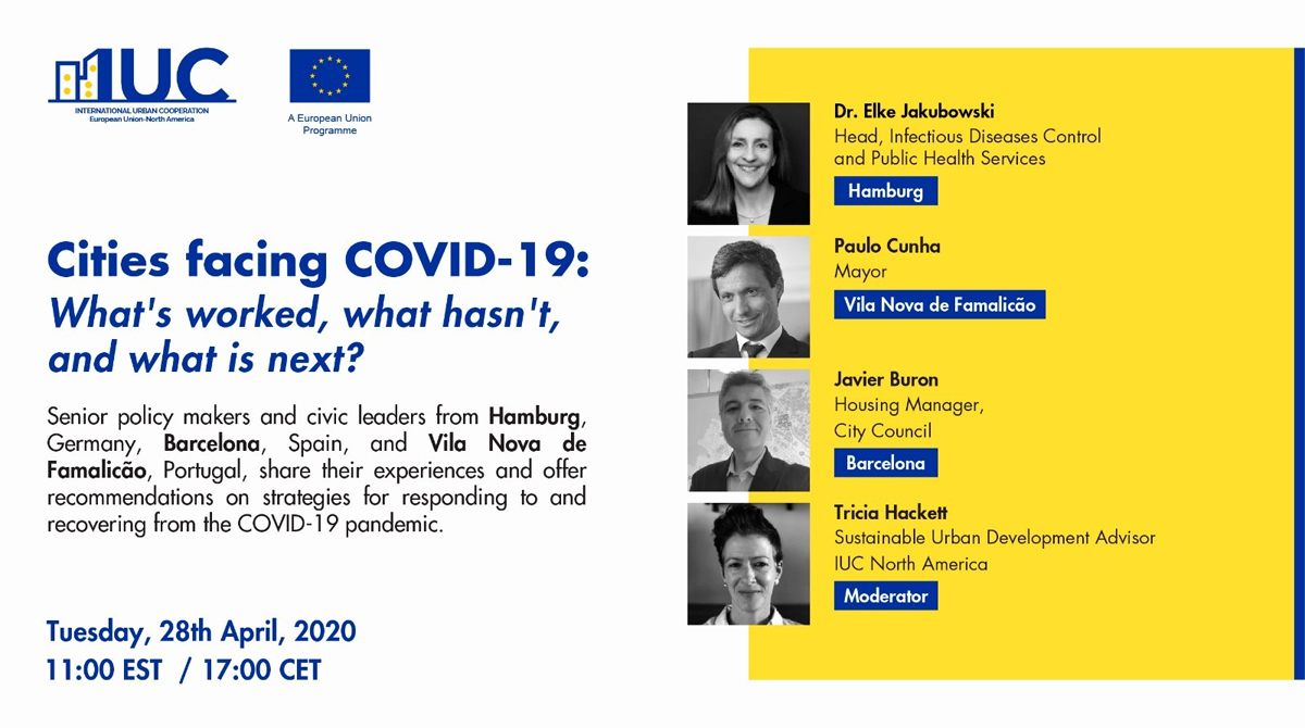 O presidente da Câmara Municipal de Vila Nova de Famalicão, Paulo Cunha, o Chefe do Serviço de Controle de Doenças Infeciosas e Saúde Pública, de Hamburgo, na Alemanha Elke Jakubowski e o Chefe da Habitação do Conselho da Cidade de Barcelona em Espanha, Javier Buron são os convidados do próximo seminário on-line “Cidades voltadas para o COVID-19: o que deu certo, o que não deu e o que vem a seguir?”, que decorre no âmbito do Programa Internacional de Cooperação Urbana – América do Norte (IUC - NA), que conta com o apoio da União Europeia. O debate é moderado pela Consultora de Desenvolvimento Urbano Sustentável da América do Norte, Tricia Hackett .