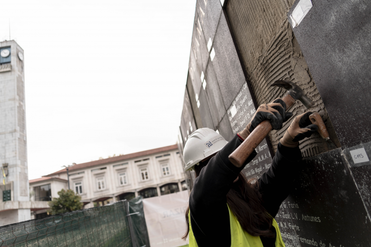 The mural honouring the founders of the municipality of Vila Nova de Famalicão, located in the gardens of the Town Hall, is undergoing restoration work by the City Council.