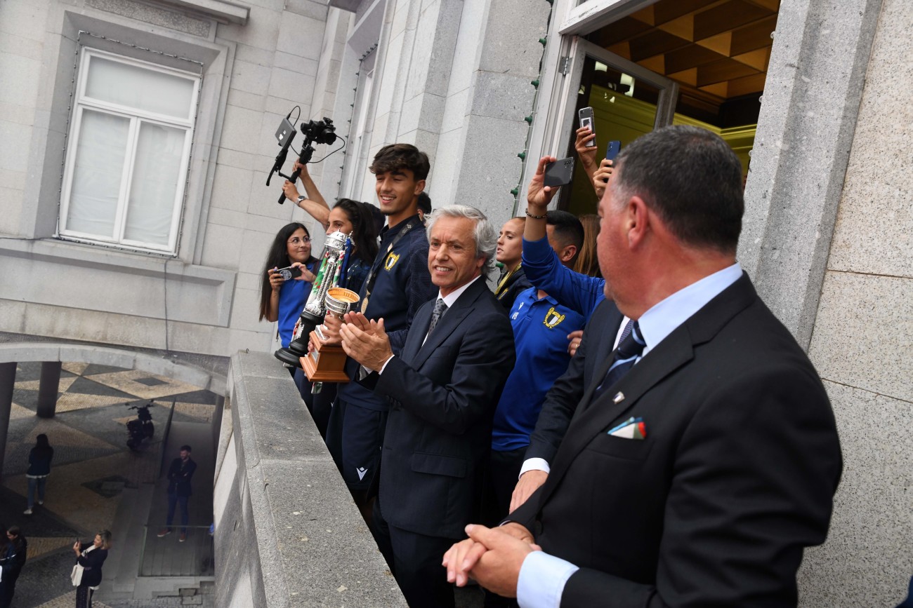 O momento de consagração das duas equipas decorreu num ambiente de grande festa nos Paços do Concelho, com centenas de adeptos a aplaudirem e a festejarem os títulos inéditos conquistados pelas duas formações no passado fim-de-semana.