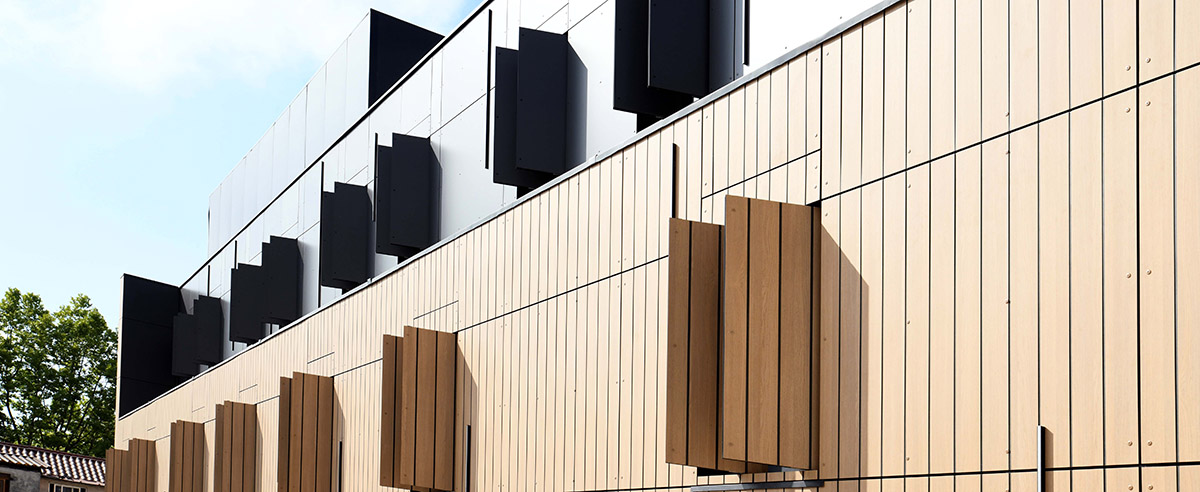 O edifício contempla diversas áreas funcionais, como receção, sala de estudo, espaço de refeição e convício internos e externos, cozinhas, instalações sanitárias, salas técnicas, área de apoio ao pessoal, áreas de gestão, armazenamento e garagem/oficina para bicicletas.